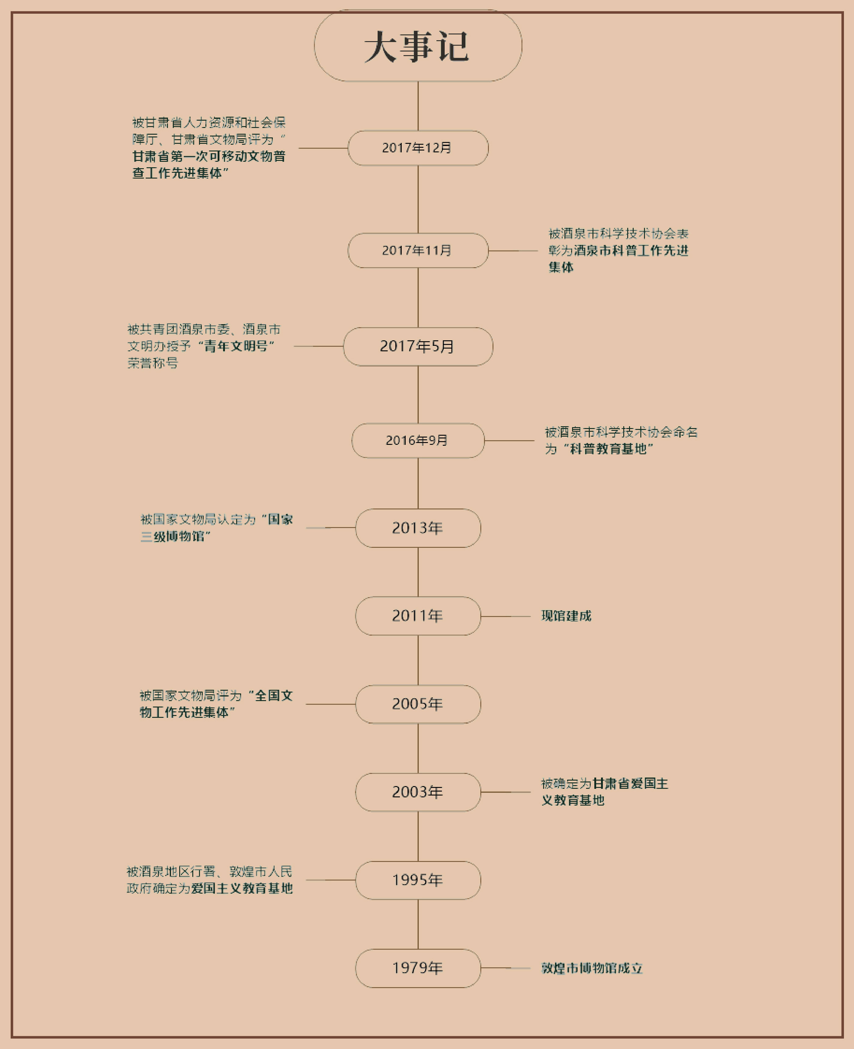 敦煌市博物馆成立于1979年,现馆建成于2011年。建筑方案由中国建筑设计研究院建筑大师崔恺主持设计,整个建筑外形、色调融长城烽及古城堡式建筑等文化符号于一体,美观庄重、大方。现馆建筑面积7500平方米,内设展厅、文物库房、放映厅、休息厅等,以《华我交会的都市》为展览主题,共设6个展厅。博物馆内设施齐全,功能完善,是弘扬敦煌文化、展示敦煌古代文明的重要窗口,也是敦煌学又一个重要的研究基地。 敦煌市博物馆被列为2008年甘肃省首批免费开放的博物馆。拥有标准文物库房和文物展厅常年举办以《华戎交会的都市》为主题的展览展出文物1000余件,并负责全市境内文物的征集、宣传、管理、调查、维修等工作,是一个融文物保护、研究、征集、收藏、陈列展出于一体的综合性博物馆。